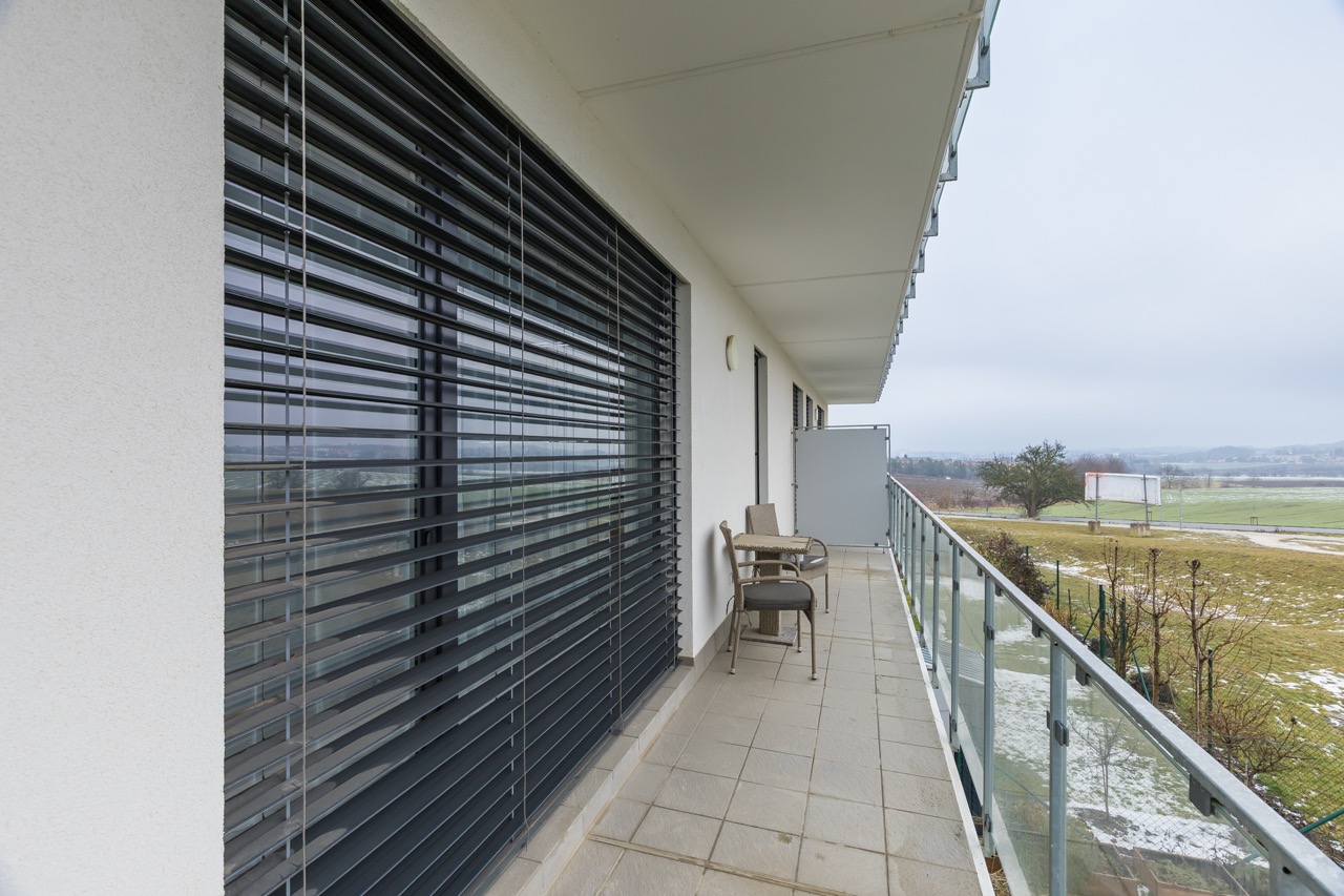 Na 14m² prostorném balkoně můžete relaxovat, grilovat nebo si užívat klidné večery s výhledem do zeleně. A když se vám nebude chtít po schodech? Žádný problém – dům má výtah. 🛗