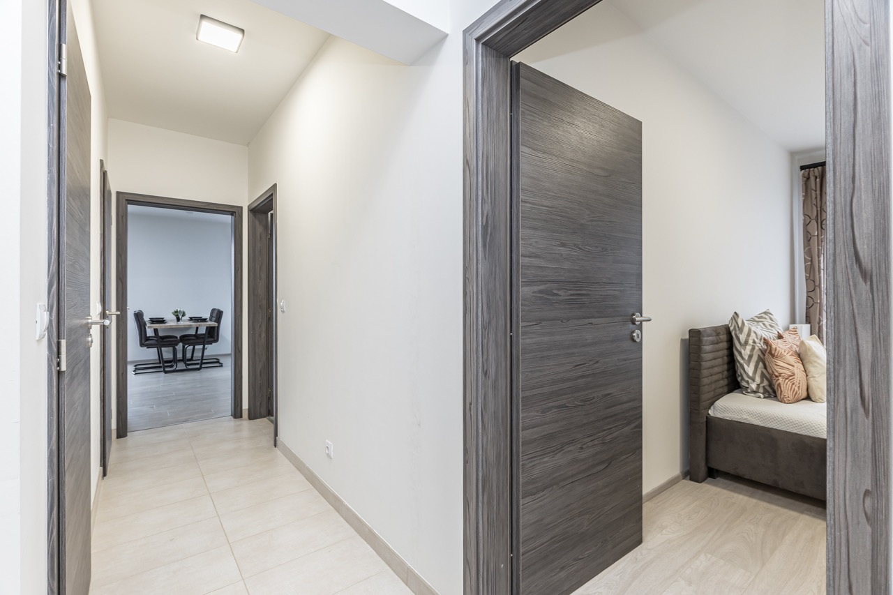 Tento moderně vybavený byt vznikl s důrazem na kvalitu, pohodlí a funkčnost. Je částečně zařízen nábytkem, moderní kuchyňskou linkou a nabízí útulné i reprezentativní prostředí pro život.